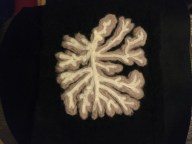 Although needle felting, sculpting in wool, is the main passion I fill up the time between projects with other crafts. I have the brain beanie which you may find on the head of your favourite anatomists – even the other side of the world, the DNA scarf and the ‘Lost Souls’ shawl. (The pattern for the DNA scarf is in the articles part of this web site.)